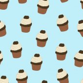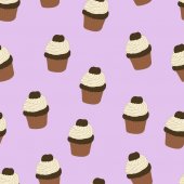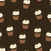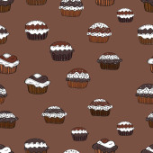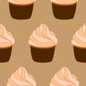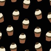 Wzór z ręcznie rysowane i malowane cupcakes. Grafikę wektorową. Piękne, pyszne słodycze dla dziewczyn. Ilustracja kremowe ciasta. Brązowe tło.