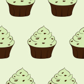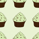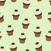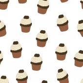 Wzór z ręcznie rysowane i malowane cupcakes. Grafikę wektorową. Piękne, pyszne słodycze dla dziewczyn. Ilustracja kremowe ciasta. Beżowym tle.
