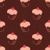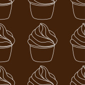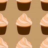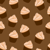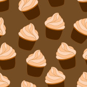 Wzór z ręcznie rysowane i malowane cupcakes. Grafikę wektorową. Piękne, pyszne słodycze dla dziewczyn. Ilustracja kremowe ciasta. Ciemnym tle brązowy.