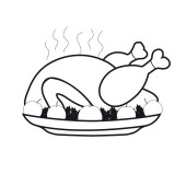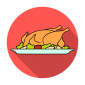 Kurczak pieczony z ikoną dekoracji w stylu monochromatyczne na białym tle. Restauracja symbol Stockowa ilustracja wektorowa.