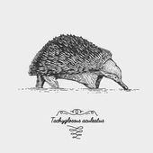 Echidna Tachyglossus aculeatus grawerowane, wektor ilustracja w drzeworycie scratchboard stylu, vintage rysunek gatunków.