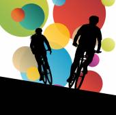 Objęta jest rowerzystów mężczyzn aktywnych graczy polo rowerzystami w ziemi streszczenie