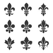 Zdjęcie "Zbiór w obiekcie fleur de lis symbole, czarne sylwetki - symbole heraldyczne. Ilustracja wektorowa. Średniowieczne znaki. Świecące francuskiego fleur de lis royal lily. Elegancki wystrój symboli." może być wykorzystywane do celów osobistych i komercyjnych zgodnie z warunkami zakupionej licencji Royalty-free. Obraz jest dostępny do pobrania w jakości wysokiej rozdzielczości do 5760x3840.