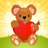 Kreskówka mały niedźwiedź gospodarstwa czerwony kształt balon