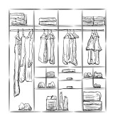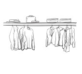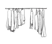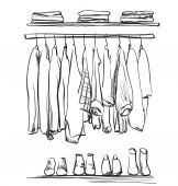 Ręcznie rysowane szafa szkic. Ubrania na wieszaku.