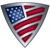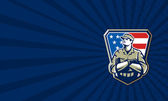 Hydraulik rękę trzymając klucz do rur flaga Usa Crest Retro