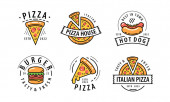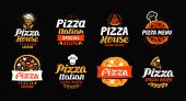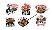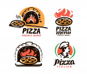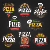Logo pizzy. Etykiety kolekcji dla restauracji lub pizzerii. Ikony wektorowe