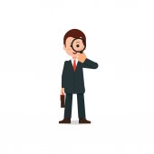 Szczęśliwy biznesmen w garnitur z teczki gospodarstwa kawy czerwony .