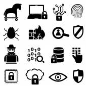 Ikony bezpieczeństwa bezpieczeństwa cybernetycznego, wirus i komputer