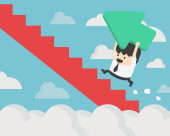 biznesmen na czerwona strzałka skierowana w górę do nieba