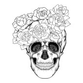Ludzka czaszka tribal stylu. Tatuaż blackwork. Wektor ilustracja. Boho