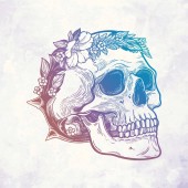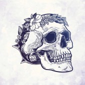 Ludzka czaszka tribal stylu. Tatuaż blackwork. Wektor ilustracja. Boho
