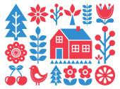 Fiński inspirowane wzór sztuki ludowej - skandynawskim, Nordic styl w kolorze turkusu i malina