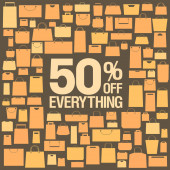 Promocje sprzedaży transparent z torby na zakupy czerwony papier tle żywy żółty