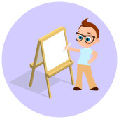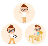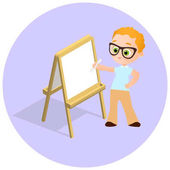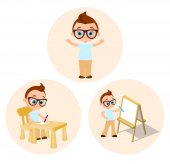 Zdjęcie "Młody chłopak w okularach farby siedząc w ławce szkolnej. Ilustracja wektora eps 10. Stylu cartoon płaskie." może być wykorzystywane do celów osobistych i komercyjnych zgodnie z warunkami zakupionej licencji Royalty-free. Obraz jest dostępny do pobrania w jakości wysokiej rozdzielczości do 5760x3840.