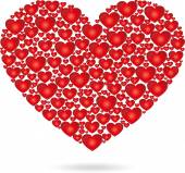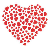 Wielu małych serc Red składa się w formie jedno serce, ozdoba dla karty z pozdrowieniami o miłości. Happy Valentines day życzeniami na białym tle. Ilustracja wektorowa. Eps10