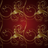 Czerwone tło z złote koronki kwiatowy ornament granicy