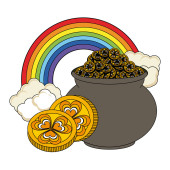 Saint patrick dzień garnek złota monet rainbow skarb