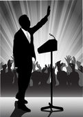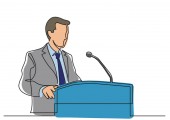 Polityk wydajność przy mikrofonie karykatura ilustracja wektorowa.