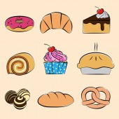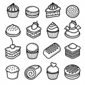 zestaw ikon grubą linią świata najlepsze desery i słodycze
