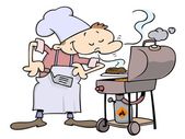 kreskówka mężczyzna przygotowuje się do grilla żeber
