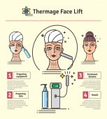 Ilustracje: wektor zestaw z salon kosmetologii zabieg na twarz Thermage