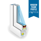 Profil ramy okien z tworzyw sztucznych. Energia skuteczny okno przekroju. Trzy przezroczyste szkło. Ilustracja wektorowa