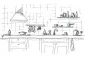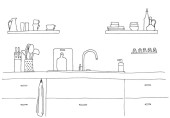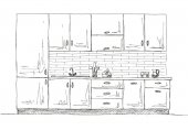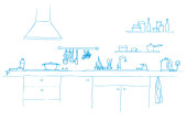 Zlewozmywaka. Kuchnia Blat z umywalką. Szkic kuchnia.