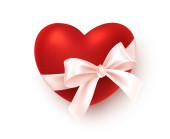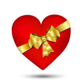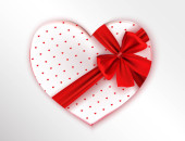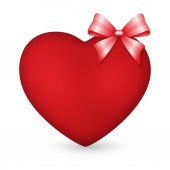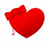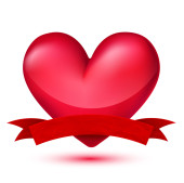 Czerwone serce z czerwoną kokardką i wstążki na białym tle