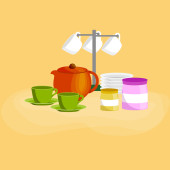 Zdjęcie "Kuchnia gospodarstwa domowego sztućce filiżanki czyste i białe płytki ceramiczne ułożone. czajnik, kubki talerze w zestaw do herbaty ilustracja wektorowa" może być wykorzystywane do celów osobistych i komercyjnych zgodnie z warunkami zakupionej licencji Royalty-free. Obraz jest dostępny do pobrania w jakości wysokiej rozdzielczości do 5760x3840.
