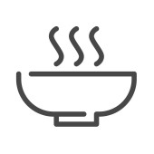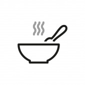 Miskę gorącej zupy z łyżką szkic ikona.