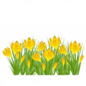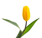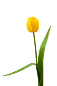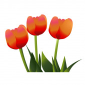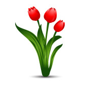 Bukiet z trzech żółte tulipany z zielonych liści. Ilustracja wektorowa