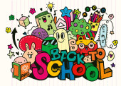 Wektor ilustracja z powrotem do szkoły, Monster Doodle na swoim