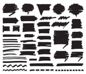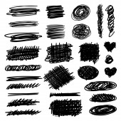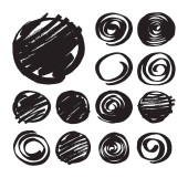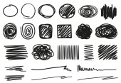 Zestaw symboli kulas ręcznie rysowane na białym tle. Doodle stylu szkice. Odznaki na zacieniowane i wyklutych i kształty bańki. Elementy projektu eps8 monochromatyczne wektor.