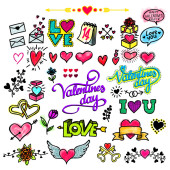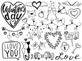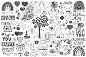 Valentine's Day ustawić etykiety, herby i inne elementy. Ilustracja wektorowa Eps 10. Na białym tle na białym tle. Rysunek odręczny.