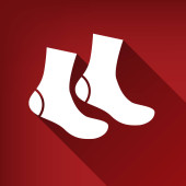 Skarpety znak. Wektor. Nowy rok czerwonawo-ikona z zewnątrz obrysu i szary cień na jasnoszarym tle.