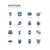Czekolada pączek i szkło kubek niebieski ze słomy, fast food zamówienia