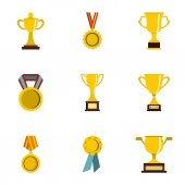 Zdjęcie "Nagroda ikony stylu set, płaskie" może być wykorzystywane do celów osobistych i komercyjnych zgodnie z warunkami zakupionej licencji Royalty-free. Obraz jest dostępny do pobrania w jakości wysokiej rozdzielczości do 5760x3840.