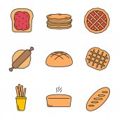 Wektor makaronik świeże pieczywo produktów ikony na białym tle piekarnia zestaw pszenicy tosty ziarna przekąska krem zbóż odżywianie organiczny rogalik