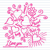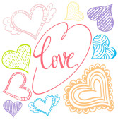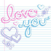 ręcznie rysowane Walentynki serce i miłość, którą można napis szkicowy notatnik gryzmoły