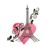 Paryż. Ręcznie rysowane ilustracja z wieży Eiffla. Romantyczne karty z sercem