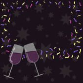 Kieliszki do szampana i chorągiew z na ciemnym tle