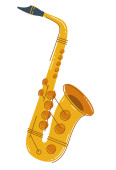 Saksofon złotą ikoną muzyki klasycznej dźwięk instrumentu ilustracji wektorowych i mosiądzu rozrywka złotą opaską projektowania sprzętu blues muzyk koncert sax.