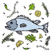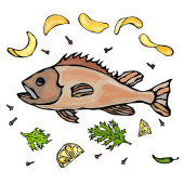 Zdjęcie "Rybne danie ilustracja wektorowa z przyprawami" może być wykorzystywane do celów osobistych i komercyjnych zgodnie z warunkami zakupionej licencji Royalty-free. Obraz jest dostępny do pobrania w jakości wysokiej rozdzielczości do 5760x3840.