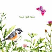 Ilustracja wektorowa ptak, klatka dla ptaków i kwiaty.