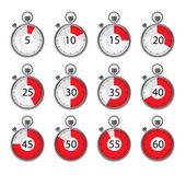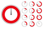 Realistyczne stoper z czerwoną tarczą i bar sekund. Zestaw zegarów z