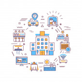 Zestaw miejskich i podmiejskich domów. Pojęcie nieruchomości. Ilustracja wektorowa.