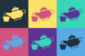 Znak do kawy herbaty. Cztery style ikonę na cztery kwadraty koloru.