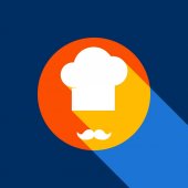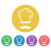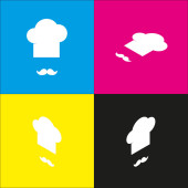 Szef kuchni kapelusz i wąsy znak. Cztery style ikonę na cztery kwadraty koloru.