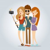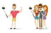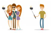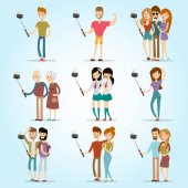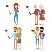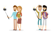 Selfie ludzie na białym tle wektor ilustracja charakter zdjęcie styl życia zestaw hipster Inteligentne kamery płaski smartphone osoba obraz para miłości